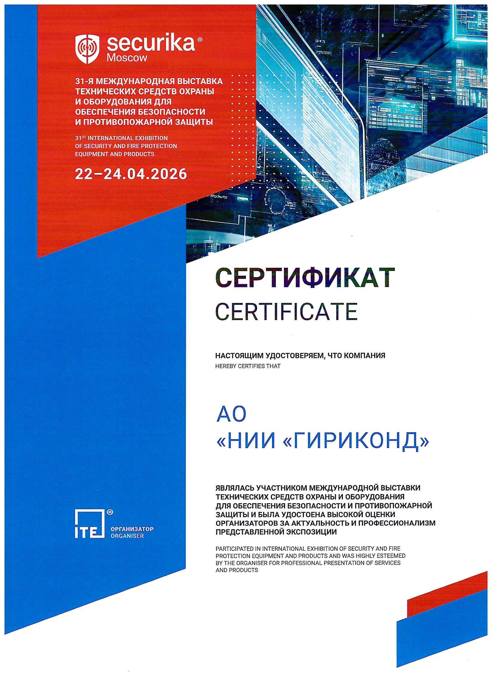 Научно‑исследовательский институт «Гириконд» успешно выступил на международной выставке Securika Moscow 2026 — ключевом событии отрасли оборудования для обеспечения безопасности и противопожарной защиты. Мероприятие прошло с 22 по 24 апреля в Москве, в МВЦ «Крокус Экспо».